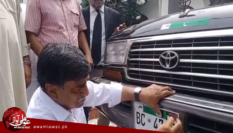 وڊيو ۾ ڏسي سگهجي ٿو ته آفاق احمد نمبر پليٽ تي موجود اجرڪ واري پٽي تي پنهنجي هٿن سان پاڪستاني پرچم وارو اسٽيڪر لڳائي رهيو آهي.