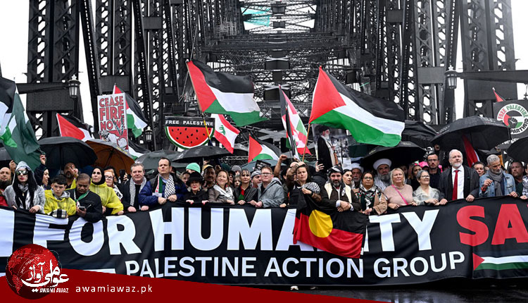 سڊني (ويب ڊيسڪ) آسٽريلوي شهر سڊني ۾ هزارين ماڻهو غزا ۾ اسرائيلي جارحيت خلاف روڊن تي نڪري آيا.