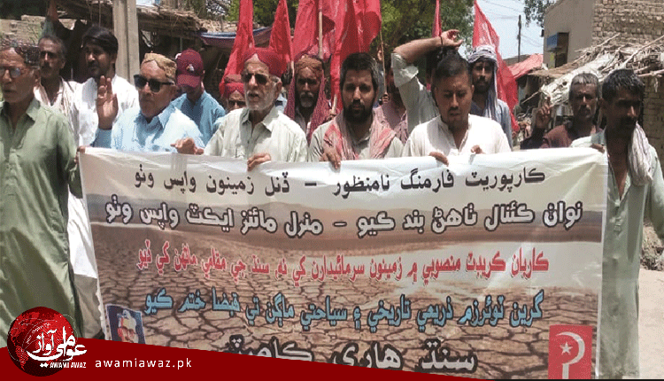 سڳيون (ن ع آ) ڪارپوريٽ فارمنگ ۽ منرل اينڊ مائنز ايڪٽ خلاف سنڌ ھاري ڪميٽي ڪميونسٽ پارٽي طرفان سڳيون ۾ سنڌ ھاري ڪميٽي جي صدر پروفيسر مير منور ٽالپر ۽ ٻين جي اڳواڻي ۾ احتجاجي ريلي ڪڍي وئي، ان دوران مظاھرين ڪارپوريٽ فارمنگ خلاف نعريبازي ڪري رھيا ھئا، ان موقعي تي خطاب ڪندي پروفيسر مير منور ٽالپر چيو ته سنڌ جون زمينون ڪارپوريٽ فارمنگ وسيلي نيلام ڪري انهن لاءِ نوان ڪينال ٺاهي سنڌ کي بنجر بنائڻ جي سازش ڪئي پئي وڃي، سنڌ مان 80 سيڪڙو تيل ۽ گئس نڪري ٿو رياست اھو تيل، گئس آمريڪا کي ڏيڻ چاهي ٿي، ان موقعي تي ڪامريڊ صالح سومرو ۽ ٻين پڻ خطاب ڪيو.