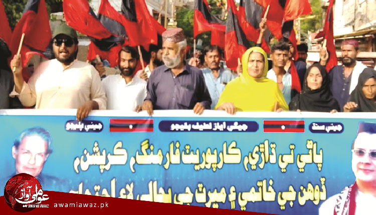 ڪراچي/حيدرآباد/سکر(نمائندا) قومي عوامي تحريڪ جي مرڪزي سڏ تي درياھ تي ڌاڙي، ڪارپوريٽ فارمنگ، ڪرپشن، ڏوھن ۽ ميرٽ جي لتاڙ خلاف ٽئين ڏينھن به مختلف شھرن ۾ ريليون ڪڍي مظاھرا ڪيا ويا.ان سلسلي ۾ گولاڙچي ۾ قومي عوامي تحريڪ جي مرڪزي جنرل سيڪريٽري ايڊووڪيٽ مظهر راهوجو، عبداﷲ چانڊيو، گيانچد مھيشوري،بچل احمداڻي جي اڳواڻي ۾ احتجاجي مظاهرو ڪيو، حيدرآباد جي علائقي حسين آباد چوڪ تي قومي عوامي تحريڪ جي ضلعي صدر نذير احمد بليدي، بابو ميمڻ، معشوق چانڊيو، عباس پٺاڻ، نذير لاکو، راول سيال، نور حسن جمالي، رب ڏنو ملڪ، شاويز ملاح، جمن سولنگي، فاضل سمون جي اڳواڻي ۾ مظاھرو ڪيو ويو، احتجاج ۾ سنڌياڻي تحريڪ جي مرڪزي صدر زينت سمون، نصرت خاصخيلي، ماروي خاصخيلي پڻ شريڪ ٿيون. ڪوٽڙي ۾ امداد پنھور، ڄامشورو جي ضلعي صدر اعجاز سومرو، محمد خان، شبير ساند، صورت علي ڇٽو، مقصود جھتيال، ذاڪر گرگيز، امام بخش پنھور، عطا سومرو، ظھير عباس، ديدار کوسو، ڪاشف پنھور، افتخار پنھور، شاھزيب پنھور ميھڙ ۾ ميرکوسو ايڊووڪيٽ، سومر چانڊيو، فياض چانڊيو، اصغر رند،سلمان چانڊيو، ساگر چانڊيو ۽ پنھل سولنگي عمرڪوٽ ۾ الفقراء رحيم مهر، راجا دسرٿ ڏيپار، مشتاق مهر،پون چوڌري،ارشد کوسو،رام باگڙي، سڪندر باگڙي، ڪيلاش ڏان چارڻ، ڪريم مڱريو، وقار ڪلر نئون ديرو ۾ سڪندر علي لاشاري، عبد الرحمن سپڙو، امان الله پٽو، غلام مصطفي شيخ، جھنگل خان ڪوريجو، محمد مٿل شيخ، ڪميل رضا جتوئي، غلام حيدر لاشاري، صاحل لاشاري، آفتاب بلوچ، رئيس کوکر، امام علي لاشاري، علي رضا لاشاري، توفيق احمد کوکر، فراز لاشاري، وقاس علي ڪلھوڙو ۽ ٻين ڪئي. احتجاج ۾ پ پ شھيد ڀٽو جي سليم چنا، غلام نبي ڪولاچي ۽ رٽائرڊ استاد منظور علي منگي پڻ شريڪ ٿيا. ان موقعي تي قومي عوامي تحريڪ جي مرڪزي جنرل سيڪريٽري ايڊووڪيٽ مظھر راھوجو خطاب ڪندي چيو ته سنڌو درياھ ۾ وڏي مقدار ۾ پاڻي ھجڻ باوجود بدين، سجاول، ٽنڊو محمد خان، سميت سڄي سنڌ ۾ پڇڙي آبادگارن کي اڃا تائين نٿو ڏنو وڃي. وفاقي حڪومت سنڌ کي ڪرپشن جي ڪالوني بنائي ڇڏيو آھي. پيپلز پارٽي سنڌ جا وسيلا ڏئي اقتدار خريد ڪيو آھي. 6 ڪئنال ۽ ڪارپوريٽ فارمنگ سنڌ دشمن منصوبا آھن. ارسا ۽ واپڊا سنڌو درياھ تي ڌاڙو ھڻڻ ۾ سھولتڪار بنيل آھن سڪرنڊ ۾ مير محمد منگي جنرل سيڪريٽري رسول بخش لغاري، مولا بخش ڪيريو، فيروز لغاري ۽ ٻين جي اڳواڻيءَ ۾ سڪرنڊ پريس ڪلب اڳيان احتجاج ڪري سخت نعريبازي ڪئي.