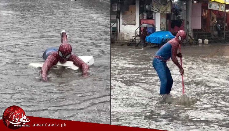 اسپائيڊر مين جي ڪاسٽيوم ۾ هڪ شخص جي روڊ تي پاڻي ڪڍڻ جي ڪوشش جي وڊيو سوشل ميڊيا تي وائرل ٿي وئي، جنهن تي ماڻهن مزاحيا تبصرا ڪيا.