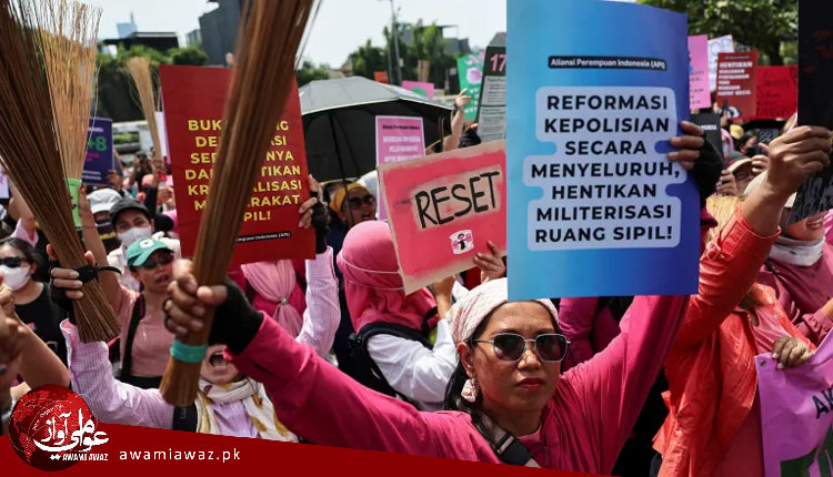 جڪارتا (م ڊ) انڊونيشيا جي راڄڌاني جڪارتا ۽ ٻين اهم شهرن ۾ سوين عورتن گلابي لباس پهري ۽ ٻهارا کڻي پارليامينٽ طرف مارچ ڪيو، مظاهرو ڪندڙ عورتن پوليس جي ناجائز روين ۽ غيرضروري سرڪاري خرچن خلاف آواز اٿاريو، مظاهرن جو سلسلو ٻئي هفتي ۾ داخل ٿي ويو، جن جي شروعات مهانگائي ۽ پارليامينٽ ميمبرن کي ڏني ويندڙ مهانگين مراعتن تي عوامي ڪاوڙ سبب ٿي. صورتحال ان وقت وڌيڪ ڇڪتاڻ واري ٿي وئي، جڏهن هڪ موٽر سائيڪل ٽيڪسي ڊرائيور پوليس جي گاڏي هيٺ اچي فوت ٿي ويو، صدر پرابووا شروعات ۾ بيجنگ جي فوجي پريڊ ۾ شرڪت ملتي ڪرڻ جو اعلان ڪيو، پر پوءِ به چين جي صدر شي جن پنگ ۽ روسي صدر ولادي ميئر پوٽن سان گڏ گروپ فوٽو ۾ نظر آيو.انڊونيشيا وومينز الائنس (IWBA) جي عورتن چيو ته ٻهارو خواهش جي علامت آهي ته رياست جي گندگي، عسڪريت پسندي ۽ پوليس جي ظلم کي صاف ڪيو وڃي.