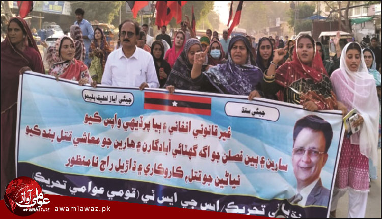 حيدرآباد (پ ر) سنڌياڻي تحريڪ ۽ قومي عوامي تحريڪ غير قانوني افغانين کي نيڪال نہ ڪرڻ، سارين جو اگھ گھٽائڻ، عورتن جي قتل، ڪاروڪاري ۽ ڌاڙيل راڄ خلاف قاسم آباد حيدرآباد جي علائقي لنڊن ٽائون کان پيادل مارچ علي ڪري پيلس چوڪ، نسيم نگر چوڪ، واڌو واھ کان ٿيندو پڪوڙا چوڪ تي پھتو جتي ڌرڻو هنيو ويو، مارچ جي اڳواڻي قومي عوامي تحريڪ جو مرڪزي جنرل سيڪريٽري ايڊووڪيٽ مظھر راھوجو، سنڌياڻي تحريڪ جي مرڪزي صدر زينت سمون، زاھده ڏاھري، نصرت خاصخيلي، امير زادي برھماڻي، شھربانو راھوجو، شازيا احمداڻي، صبا سمون، زرينه بلوچ، نذيران مجدد قريشي، عزيزان نوناري، جميلان لغاري، ميڻي ڪولھي، راحيلا لاڙڪ، نسيم گورچاڻي، عائشا لاڙڪ، تبسم ترڪ، ماروي خاصخيلي، فضا ملاح، ھميره اختر، بختاور چنڊ، شائسته ابڙو، بختاور خاصخيلي، زرينا ڇلگري، مرڪ خاصخيلي، تنزيلا ساند، عاليا بروھي، سنجيھا لغاري ۽ قومي عوامي تحريڪ جي اڳواڻن الطاف خاصخيلي، معشوق چانڊيو، زاھد ڀنڀرو، حسين درس، رازو ڪولھي ۽ ٻيا ڪري رهيا هئا، مارچ کي خطاب قومي عوامي تحريڪ جي مرڪزي جنرل سيڪريٽري ايڊووڪيٽ مظھر راھوجو خطاب ڪندي چيو ته ٽن صوبن مان غير قانوني افغانين کي پڪڙي واپس پنھنجي ملڪ موڪليو پيو وڃي پر سنڌ حڪومت جا وزير، وڏيرا ۽ پوليس غير قانوني افغانين کي نيڪالي ڏيڻ بدران انھن تحفظ ڏئي رھيا آھن، سنڌ حڪومت صرف ڏيکاءُ خاطر غير قانوني افغانين جي نيڪالي جا لفظي بيان ڏئي رھي آھي، ڪراچي ۾ افغان بستي کانسواءِ سڄي ڪراچي ۾ غير قانوني افغانين جون بستيون آھن، حيدرآباد، نواب شاھ، سکر، لاڙڪاڻو، ميرپورخاص، ڄامشورو سميت سمورن ضلعن ۾ غير قانوني افغاني پکڙيل آھن، اتي ڪو به ايڪشن نه ٿيو آھي، سنڌياڻي تحريڪ جي مرڪزي صدر زينت سمون خطاب ڪندي چيو ته سارين جو اگھه گھٽائي آبادگارن ۽ ھارين جو معاشي قتل ڪيو پيو وڃي. ھنن مطالبو ڪيو ته سارين جو اگھ 4000 ھزار روپيا مقرر ڪري سنڌ حڪومت خريداري مرڪز قائم ڪري. سارين جو اگھ گھٽائڻ ۾ صوبائي وزير، ڊپٽي ڪمشنر، ڪارخانيدار ۽ واپاري ملوث آھن. واپارين ۽ ڪارخانيدارن ڊپٽي ڪمشنرن ۽ صوبائي وزير کي ڪروڙين روپيا ڀتو ڏئي خاموش ڪرائي ڇڏيو آھي. جنھنڪري سنڌ حڪومت اگھ مقرر نٿي ڪري ۽ خريداري سينٽر قائم نٿي ڪري، سنڌياڻي تحريڪ جي مرڪزي نائب صدر زاھده ڏاھري خطاب ڪندي چيو ته سنڌ کي عورتن ۽ نياڻين جي مقتل گاھ بنايو ويو آھي. ڪاروڪاري، سڱ چٽي ۽ ٻين قبيلائي رسمن ذريعي عورتن جي زندگي جھنم بنائي وئي آھي. ننڍي عمر جي نياڻين جو زبردستي مذھب تبديل ڪري انھن جون شاديون ڪيون وڃن ٿيون، جيڪو عمل غير قانوني ۽ غير شرعي آھي، فضا ملاح خطاب ڪندي چيو ته سنڌ ۾ عورتن تي تشدد، قتل، سڱ چٽين ۽ جرڳن ۾ ملوث ماڻھن کي گرفتار ڪيو وڃي. سنڌ ۾ ڏوھاري کلي عام ماڻھو اغوا، ڦرون، ڌاڙا ۽ قتل ڪري رھيا آھن. سڄي سنڌ ۾ ڌاڙيل راڄ قائم آھي. منشيات جا اڏا قائم لڳا پيا آھن. نوجوانن کي ھٿ وٺي تباھ ڪيو پيو وڃي.