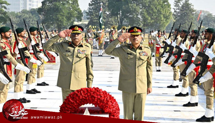 جي ايڇ ڪيو پهچڻ تي جنرل ساحر شمشاد مرزا شهيدن جي يادگار تي گلن جي چادر چاڙهي، جڏهن ته پاڪ فوج جا چاق ۽ چوبند دستي کيس گارڊ آف آنر پيش ڪيو.
