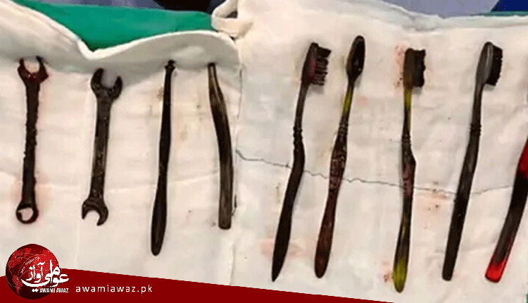 ٻن ڪلاڪن کان وڌيڪ جاري رهندڙ آپريشن دوران ڊاڪٽرن مريض جي معدي مان 7 ٽوٿ برش ۽ ٻه لوهه جا پانا ڪاميابي سان ڪڍيا.