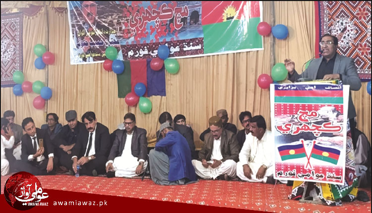 حيدرآباد(رپورٽر) سنڌ جي دانشورن. سماج سڌارڪن ۽ قومپرست اڳواڻن چيو ته سنڌ مختلف رخن کان گهيري هيٺ اچي چڪي آهي. نوان قانون پاس ڪري سنڌ جي وحدت. وسيلن. زمين ۽ شهرن تي قبضي جي سازش سٽي پئي وڃي سگهاري جدوجهد ذريعي سمورين سنڌ دشمن قوتن سان مقابلو ڪيو ويندو. ڪا به اهڙي سازش ڪامياب ٿيڻ نه ڏني ويندي جيڪا سنڌ تي وار هجي. اهڙن خيالن جو اظهار هنن سنڌ عوامي فورم طرفان حيدرآباد ۾ ڪوٺايل مچ ڪچهري دوران ڳالهائيندي ڪيو. هن مچ ڪچهري ۾ سنڌ عوامي فورم جي چيئرمين حبيب خان جتوئي. مرڪزي وائيس چيئرمين انور حاجاڻو. امرشي ٺاڪر. ڊاڪٽر حسن لغاري. هاري ڪميٽي جي سربراهه اڪبر خان جتوئي. ڊيموڪريٽڪ الائينس جي اڳواڻ ايڊووڪيٽ ستار سرڪي. وڪيل اڳواڻ ڪي بي لغاري. اسلم لغاري ۽ سول سوسائٽي جي اڳواڻن شرڪت ڪئي. اڳواڻن چيو ته 26هين ۽ 27هين ترميم پاس ڪري سنڌ جي وحدت تي وار ڪرڻ جي سازش سٽي وئي آهي. ناڻي ۽ پاڻي تي ڌاڙي هڻڻ لاءِ نوان قانون آندا پيا وڃن. سنڌ کي ڪالوني طور هلايو پيو وڃي. سنڌي عوام جي قسمت جا فيصلا وفاق ۾ ويٺل ماڻهو سنڌ جي مرضي کان سواءِ ڪري رهيا آهن. هن چيو ته سنڌ دشمن قوتن سنڌ کي ڪمزور ڪرڻ لاءِ چئني طرفن کان سنڌ کي مختلف قسمن سان گهيري ۾ آڻي ورتو آهي. پر اسين کين واضح ڪرڻ چاهيون ٿا ته سنڌ جا جوڌا پٽ ڪنهن به سنڌ دشمن قانون ۽ عمل کي برداشت نه ڪندا. هر فورم تي آواز اٿاريو ويندو. هنن چيو ته سنڌ صدين کان آزاد وطن رهيو آهي. سنڌي هڪ باوقار ۽ امن پسند قوم طور سڃاتي وڃي ٿي.