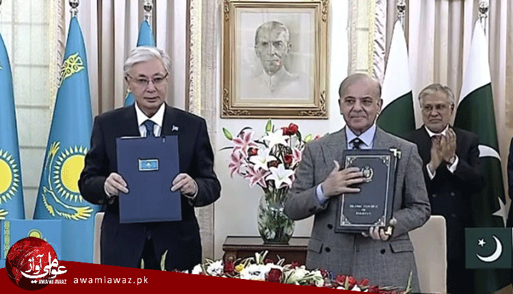 پاڪستان ۽ قازقستان ۾ مختلف شعبن ۾ سهڪار جي مفاهمتي يادداشتن ۽ معاهدن جي تقريب ۾ وزيراعظم شهباز شريف ۽ قازقستان جي صدر قاسم جومارت توڪايووف گڏيل پڌرائي تي صحيحون ڪيون.