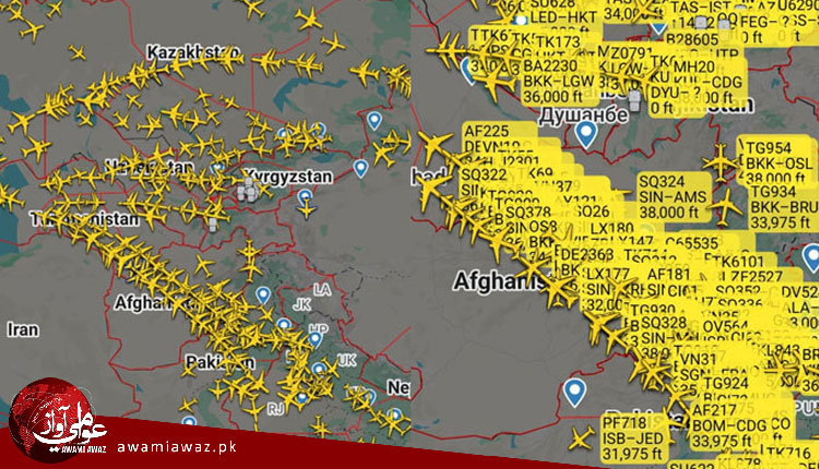فلائيٽ ريڊار موجب موجوده صورتحال ۾ پاڪ افغان فضائي حدن مان ڪيترائي روٽ دنيا جا مصروف ترين ڪوريڊور بڻجي ويا آهن.