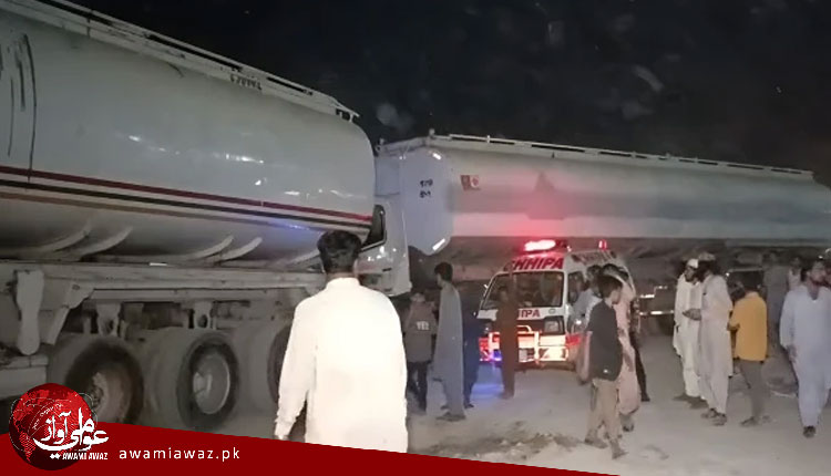 پوليس موجب هڪ آئل ٽينڪر بيٺو هو، جڏهن ته ٻيو آئل ٽينڪر بريڪ فيل ٿيڻ سبب بيٺل ٽينڪر ۾ وڃي لڳو.