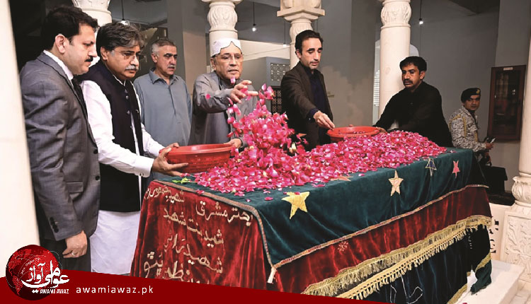 نئون ديرو/لاڙڪاڻو(نمائندا) صدر پاڪستان آصف علي زرداري ۽ پ پ چيئرمين بلاول ڀٽو زرداري خصوصي هيليڪاپٽر ذريعي شهيدن جي مزارن تي حاضري ڀرڻ لاءِ ڳڙهي خدابخش ڀٽو پهتا جتي هنن قائد عوام شهيد ذوالفقار علي ڀٽو، شهيد محترمه بينظير ڀٽو، مادر جمهوريت بيگم نصرت ڀٽو، شهيد مير مرتضيٰ ڀٽو، شهيد شاهنواز ڀٽو جي مزارن تي حاضريڀري گل رکي ملڪي سلامتي ۽ خوشحالي لاءِ فاتحه خواني ڪئي. ان موقعي تي اڳوڻي گهرو صوبائي وزير سهيل انور سيال پڻ موجود هو، شهيدن جي مزارن تي حاضري ڀرڻ بعد صدر پاڪستان آصف علي زرداري ۽ پ پ چيئرمين بلاول ڀٽو زرداري واپس نئون ديرو هائوس پهچي ويا. ان کان اڳ ملڪي صدر آصف علي زرداري ۽ پ پ چيئرمين بلاول ڀٽو زرداري نئون ديرو هائوس کان هيليڪاپٽر جي ذريعي خيرپور جي ڳوٺ صادق ڪلهوڙو ۾ زرعي زمينن جو معائنو ڪيو. خيرپور کان واپسي تي هيليڪاپٽر تي ڳڙهي خدابخش ڀٽو پهتا. ان موقعي تي سيڪيورٽي جا انتهائي سخت انتظام ڪيا ويا.صدر مملڪت آصف علي زرداري ۽ پ پ چيئرمين بلاول ڀٽو زرداري سان نئون ديرو هائوس ۾ عيد جي ٽئين ڏينهن تي به مختلف شخصيتن سان ملاقاتن جو سلسلو جاري رهيو، وفاقي گهرو وزير محسن نقوي، ناڻي کاتي جي وفاقي وزير محمد اورنگزيب، پيٽروليم مصنوعات جو وفاقي وزير علي پرويز ملڪ ۽ ٻيا سکر کان نئون ديرو هائوس پهتا جتي هنن صدر مملڪت آصف علي زرداري سان خصوصي ملاقات ڪئي آهي. ملاقات ۾ پاڪستان پيپلزپارٽي چيئرمين بلاول ڀٽو زرداري، وزير اعليٰ سنڌ سيد مراد علي شاهه، پ پ ليڊيز ونگ جي مرڪزي صدر ۽ ايم پي اي فريال ٽالپر، صوبائي وزير سيد ناصر شاهه موجود هئا. ملاقات ۾ ملڪ ۾ امن امان، معاشي صورتحال، توانائي جي شعبي ۽ پيٽروليم شين جي قيمتن جي اثرن تي خيالن جي ڏي وٺ ڪئي وئي۔ وفاقي گهرو وزير ملڪي صدر کي ملڪ ۾ دهشتگردي خلاف جاري ڪاررواين ۽ سرحدي سلامتي جي صورتحال بابت آگاهه ڪيو۔ پاڪ-افغان ڇڪتاڻ ۽ علائقائي سيڪيورٽي چئلينجز جو پڻ تفصيلي جائزو ورتو ويو۔ ناڻي کاتي جي وفاقي وزيرِ ۽ وزيرِ پيٽروليم معاشي حالات، توانائي جي شعبي ۽ پيٽروليم شين جي قيمتن ۾ واڌ جي پسمنظر ۾ حڪومتي قدمن تي بريفنگ ڏني۔ ملڪي صدر آصف علي زرداري وفاقي وزيرن کي هدايت ڪئي ته علائقي جي صورتحال کي نظر ۾ رکندي معاشي پاليسين ۾ عوامي رليف کي ترجيح ڏني وڃي ۽ پيٽروليم شين جي قيمتن جو بار گهٽ کان گهٽ رکيو وڃي ته جيئن عام ماڻهن کي سهولت فراهم ٿي سگهي.