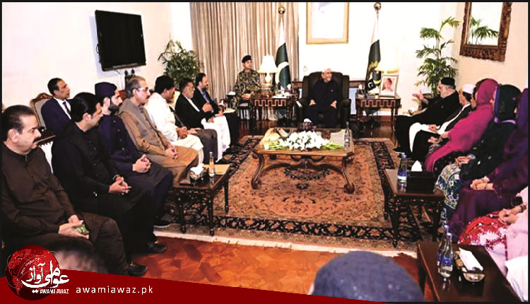 اسلام آباد (بيورو): صدر آصف علي زرداري سان بلوچستان سان واسطو رکندڙ پارليامينٽ ميمبرن جي هڪ اعليٰ سطحي وفد  ملاقات ڪئي، جنهن ۾ صوبي جي مجموعي سياسي صورتحال ۽ جاري ترقياتي منصوبن تي تفصيلي خيالن جي ڏي وٺ ڪئي وئي. ملاقات دوران صدر آصف علي زرداري ملڪ، خاص ڪري بلوچستان مان غير ملڪي پٺڀرائي سان سرگرم دهشتگرد عنصرن جي ڪڌن ارادن کي ناڪام بڻائڻ جي عزم جو ورجاءُ ڪيو. صدر چيو ته بلوچستان ۾ امن امان جي قيام ۽ معاشي ترقيءَ لاءِ رياستي ڪوششون پوري قوت سان جاري آهن ۽ ان حوالي سان ڪابه سوديبازي نه ڪئي ويندي. هن ملاقات ۾ سردار محمد عمر گورگيچ، مير عبدالقدوس بزنجو، بلال مندوخيل، نوابزادا جمال ريساڻي، نواب ثناءُ الله زهري، ظهور بليدي ۽ علي مدد جتڪ سميت وڏي انگ ۾ سياسي اڳواڻن شرڪت ڪئي. اڳواڻن صدر کي بلوچستان جي عوام جي مسئلن ۽ ترقياتي ضرورتن بابت آگاهه ڪيو، جنهن تي صدر زرداري وفد کي يقين ڏياريو ته وفاقي حڪومت بلوچستان جي ترقيءَ کي پنهنجي ترجيحن ۾ شامل رکيو آهي.